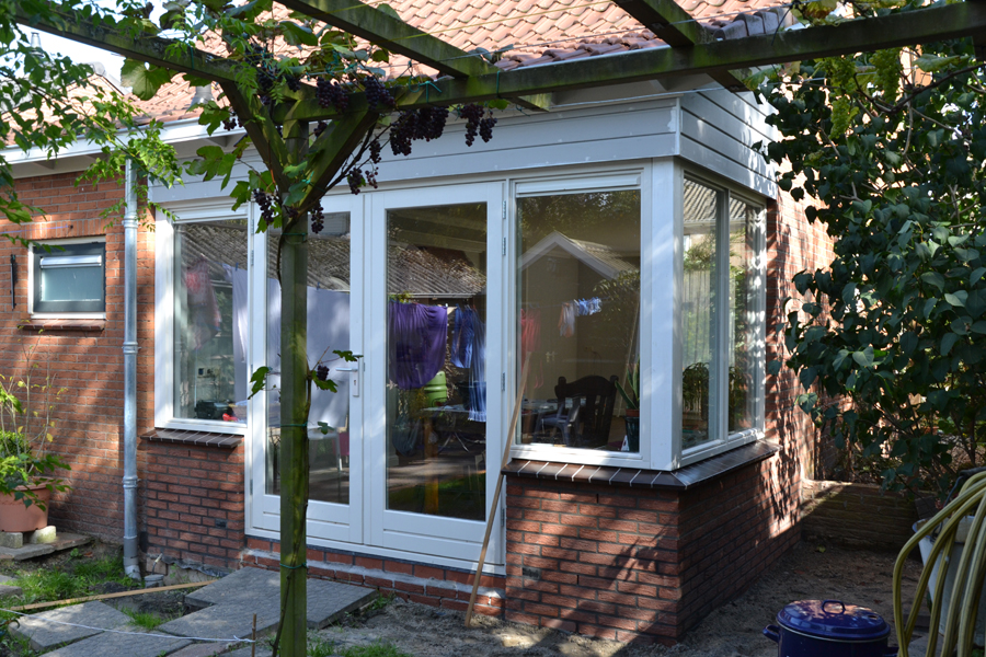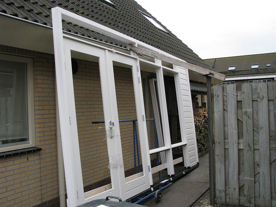 Dhr. de Vries, Enkhuizen' We zijn heel erg tevreden over de geplaatste ramen, het ziet er heel mooi robuust uit en de ramen draaien perfect, sluiten mooi af en zijn voorzien van dubbel glas. De afspraken zijn goed nagekomen een aanbeveling voor iedereen... We hebben er nog geen foto van gemaakt, omdat we het houtwerk nog willen gaan schilderen, maar wie weet plaatsen we t.z.t. nog een foto van dit werkstuk. '